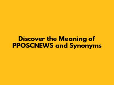 Discover The Meaning Of 'PPOSCNEWS' And Synonyms