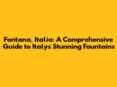 Discovering Fontana, Italy: A Guide To Italian Fountains