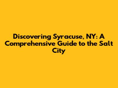 Discovering Syracuse, NY: A Guide To The Salt City