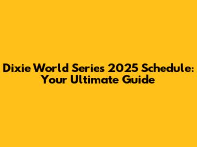 Dixie World Series 2025 Schedule: Key Dates and Locations