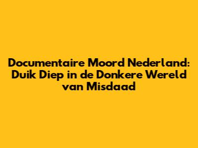 Documentaire Moord Nederland: Verborgen Verhalen En Ontrafelde Misdaden