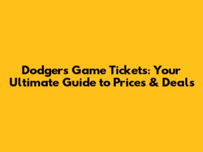 Dodgers Game Tickets: Your Guide To Prices & Deals