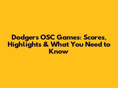 Dodgers OSC Games: Scores, Highlights & What You Need To Know