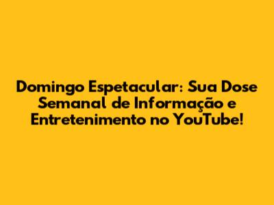 Olá, pessoal! Se você está procurando uma maneira de ficar por dentro das últimas notícias, reportagens especiais e muito entretenimento, então você está no lugar certo! O Domingo Espetacular, um dos programas mais queridos da televisão brasileira, está disponível ao vivo no YouTube para você não perder nada. Prepare a pipoca, chame a galera e vamos mergulhar no que torna este programa tão especial e como você pode aproveitar ao máximo a experiência no YouTube.