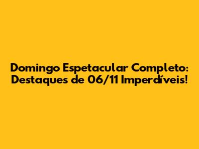 Domingo Espetacular Completo: Destaques De 06/11 Imperdíveis!