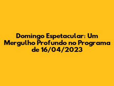 Se você está procurando por algum momento específico da edição de 16 de abril de 2023 do Domingo Espetacular, existem algumas dicas para te ajudar. A primeira dica é acessar o site oficial do programa ou as plataformas de vídeo, como o YouTube, e procurar pela edição desejada. Geralmente, os episódios são divididos em trechos, o que facilita a busca por um momento específico.