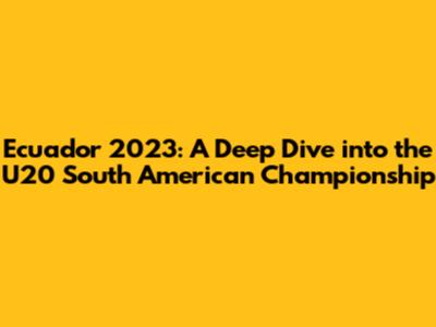 Ecuador 2023: A Deep Dive Into The U20 South American Championship