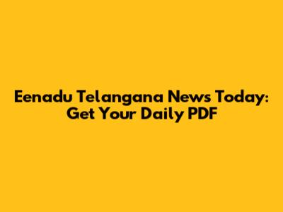 Eenadu Telangana News Today: Get Your Daily PDF