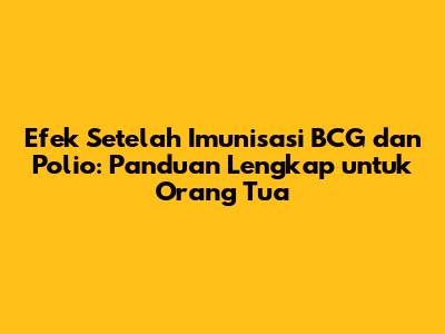 Imunisasi BCG dan Polio adalah bagian penting dari jadwal imunisasi anak. Dengan memahami efek setelah imunisasi dan cara menanganinya, kita dapat memberikan perawatan terbaik untuk si kecil dan memastikan mereka tumbuh sehat dan kuat.