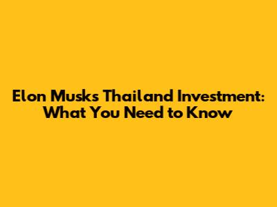Elon Musk's Thailand Investment: What You Need To Know