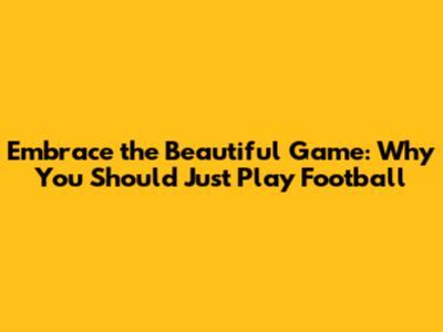 Embrace The Beautiful Game: Why You Should Just Play Football