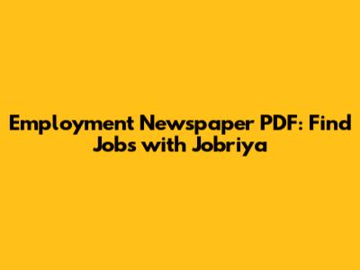 Employment Newspaper PDF: Find Jobs With Jobriya