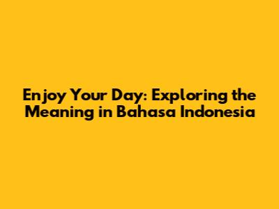 Enjoy Your Day: What Does It Mean In Indonesian?