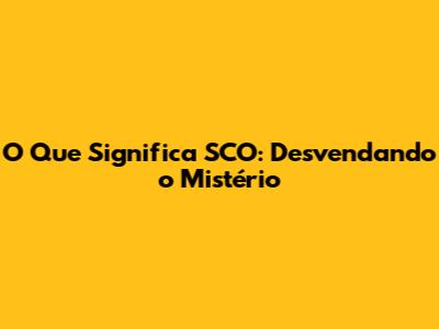 Entenda O Que É SCO E Seu Impacto!