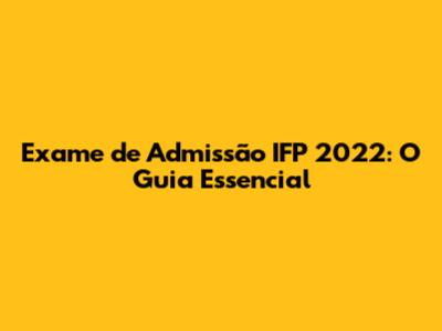 Entendendo o Exame de Admissão IFP 2022