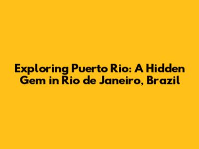 Hey guys! Ever heard of Puerto Rio in Rio de Janeiro, Brazil? If not, you're in for a treat! This isn't your typical tourist trap; it's a spot where you can dive deep into the local culture, soak up some sun, and experience the real Rio. Let's explore what makes Puerto Rio so special and why it should be on your travel list.