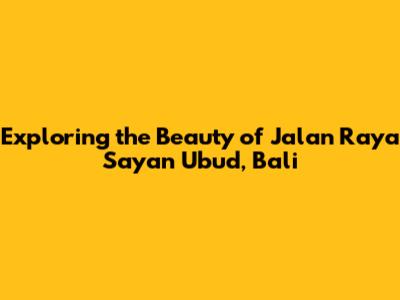Exploring The Beauty Of Jalan Raya Sayan Ubud, Bali
