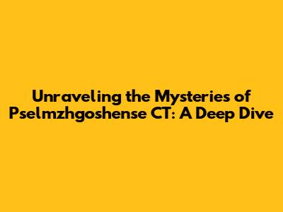Unraveling the Mysteries of Pselmzhgoshense CT: A Deep Dive