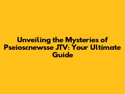 Unveiling the Mysteries of Pseioscnewsse JTV: Your Ultimate Guide