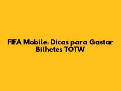 FIFA Mobile: Dicas Para Gastar Bilhetes TOTW