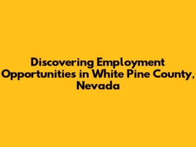 Find Jobs In White Pine County, Nevada