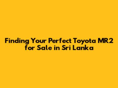 Where to Find Your Toyota MR2 in Sri Lanka