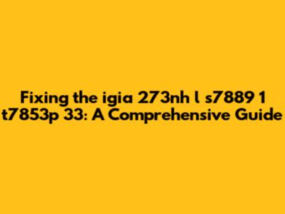 Fixing The Igia 273nh L S7889 1 T7853p 33: A Comprehensive Guide