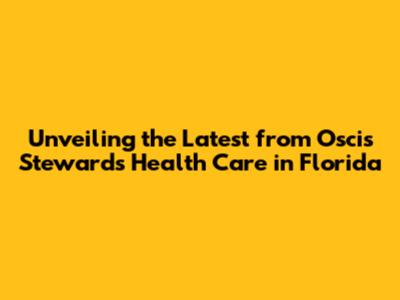 Unveiling the Latest from Oscis Stewards Health Care in Florida