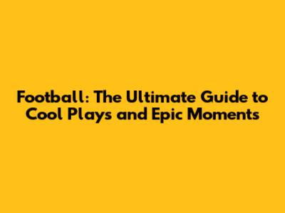 Football: The Ultimate Guide To Cool Plays And Epic Moments