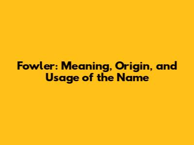 Fowler: Meaning, Origin, And Usage Of The Name