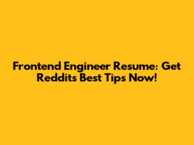 Frontend Engineer Resume: Get Reddit's Best Tips Now!