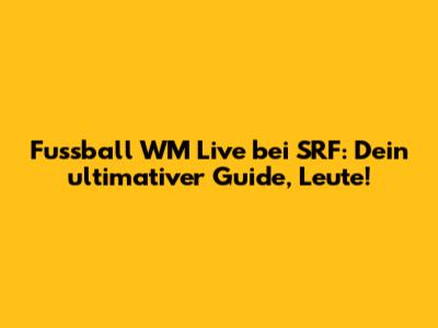 Was geht ab, Fußball-Fans! Seid ihr bereit, die spannende Welt der Fußball-Weltmeisterschaft live auf SRF zu erleben? Ich sag's euch, wenn die WM rollt, dann ist SRF eure Go-to-Anlaufstelle, um jedes einzelne Tor, jeden genialen Pass und jede dramatische Parade hautnah mitzuerleben. Kein Spiel verpassen, keine Emotion auslassen – das ist das Motto, wenn wir gemeinsam die größten Fußballmomente feiern. SRF liefert euch nicht nur die Live-Übertragungen, sondern auch die besten Analysen, Hintergrundberichte und natürlich die heißesten News rund um eure Lieblingsteams. Denkt dran, Jungs und Mädels, die WM ist mehr als nur ein Spiel; es ist ein globales Spektakel, das uns alle verbindet, und SRF sorgt dafür, dass ihr mittendrin seid. Lasst uns gemeinsam in die Faszination des Fußballs eintauchen und die Spannung bis zum Schlusspfiff genießen. Egal, ob ihr im Stadion mitfiebert oder gemütlich auf der Couch – SRF bringt euch das ganze Fußball-Fieber direkt nach Hause, mit der gewohnten Qualität und Leidenschaft, die wir von unserem Schweizer Fernsehen erwarten. Packt eure Trikots aus, holt die Snacks raus und macht euch bereit für unvergessliche Momente, denn die WM auf SRF wird legendär!