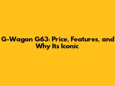 G-Wagon G63: Price, Features, And Why It's Iconic