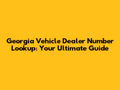 Georgia Vehicle Dealer Number Lookup: Your Complete Guide