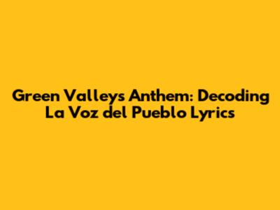 Green Valley's Anthem: Decoding 'La Voz Del Pueblo' Lyrics
