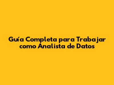 Guía Completa Para Trabajar Como Analista De Datos