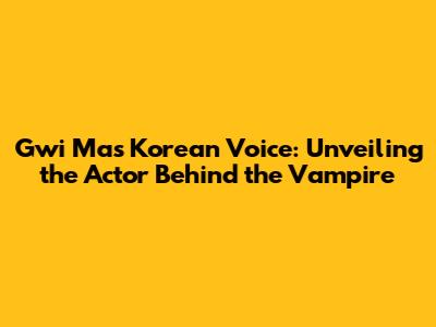 Gwi Ma's Korean Voice Actor: A Deep Dive