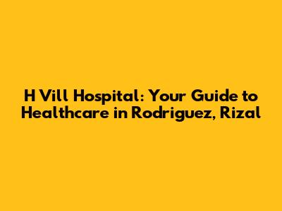 H Vill Hospital: Your Guide To Healthcare In Rodriguez, Rizal