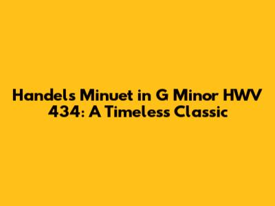 Hey guys! Ever heard a piece of music that just sticks with you, no matter how many times you listen to it? Well, for many, Handel's Minuet in G Minor HWV 434 is exactly that kind of tune. This isn't just some old song; it's a timeless classic that has resonated with music lovers for generations. Let's dive into why this minuet is so special and why it continues to captivate audiences today.
