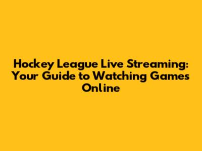 Hockey League Live Streams: Watch Games Online