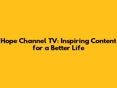 Hope Channel TV: Inspiring Content For A Better Life