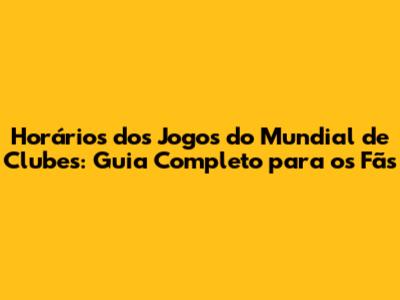 Horários Dos Jogos Do Mundial De Clubes: Saiba Tudo!