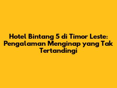 Hotel bintang 5 di Timor Leste menawarkan lebih dari sekadar tempat menginap; mereka adalah pintu gerbang menuju pengalaman liburan yang tak terlupakan. Dengan fasilitas mewah, layanan berkualitas tinggi, dan lokasi strategis, hotel-hotel ini dirancang untuk memenuhi kebutuhan dan keinginan setiap tamu. Jadi, jika kamu berencana berlibur ke Timor Leste, jangan ragu untuk memilih hotel bintang 5 sebagai akomodasi pilihanmu. Dijamin, kamu akan mendapatkan pengalaman menginap yang mewah, nyaman, dan berkesan. Selamat menikmati liburanmu!