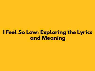 I Feel So Low: Exploring The Lyrics And Meaning