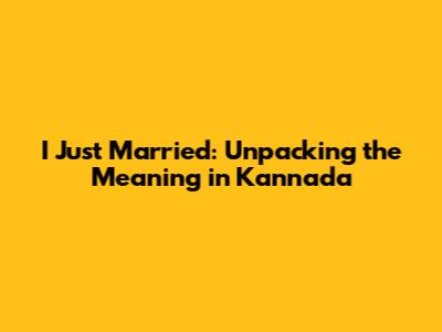 I Just Married: What Does It Mean In Kannada?