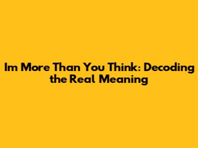I'm More Than You Think: Decoding The Real Meaning