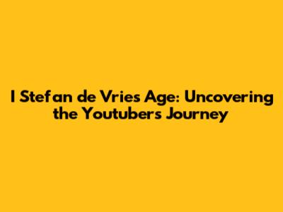 I_Stefan De Vries' Age: Uncovering The Youtuber's Journey