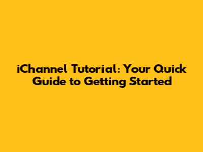 Ichannel Tutorial: Step-by-Step Guide