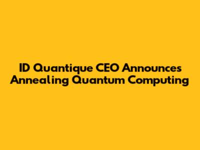 ID Quantique CEO Unveils Annealing Quantum Computing