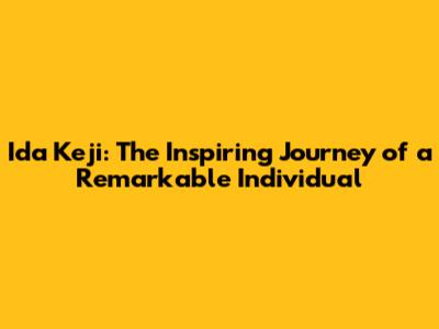 Ida Keji: The Inspiring Journey Of A Remarkable Individual